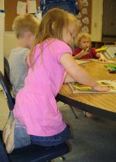 Three-year-olds love to explore words and language. They enjoy making up stories. Their favorite literary characters are often animals with human traits, such as Curious George. During the third year of life, children enjoy expressing their new found sense of humor. Silly word games and imaginative tales are just a few of the ways that three-year-olds amuse themselves! Very active, they can be found observing and exploring the world around them. Children this age perfect their motor skills by spending endless hours climbing the jungle gym or going down the same slide. They enjoy songs that can be accompanied by whole-body rhythmic movements. The three-year-old is eager to please. It's a wonderful time to establish excellent lifelong habits, if parents have the patience! |